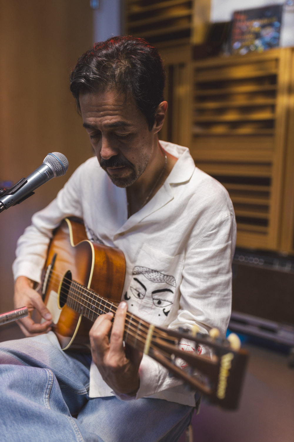 When Meme Del Real walked back into The SoCal Sound studios, it felt like a reunion. A bit longer than a year ago, Meme was here alongside his legendary band Café Tacvba, one of Mexico’s most innovative and genre-defying groups. For this visit, the acclaimed keyboardist, songwriter, and producer returned not as part of an ensemble — but as a solo artist discussing his new albume La Montaña Encedida with Nic Harcourt and performing 4 songs in and exclusive acoustic setting.